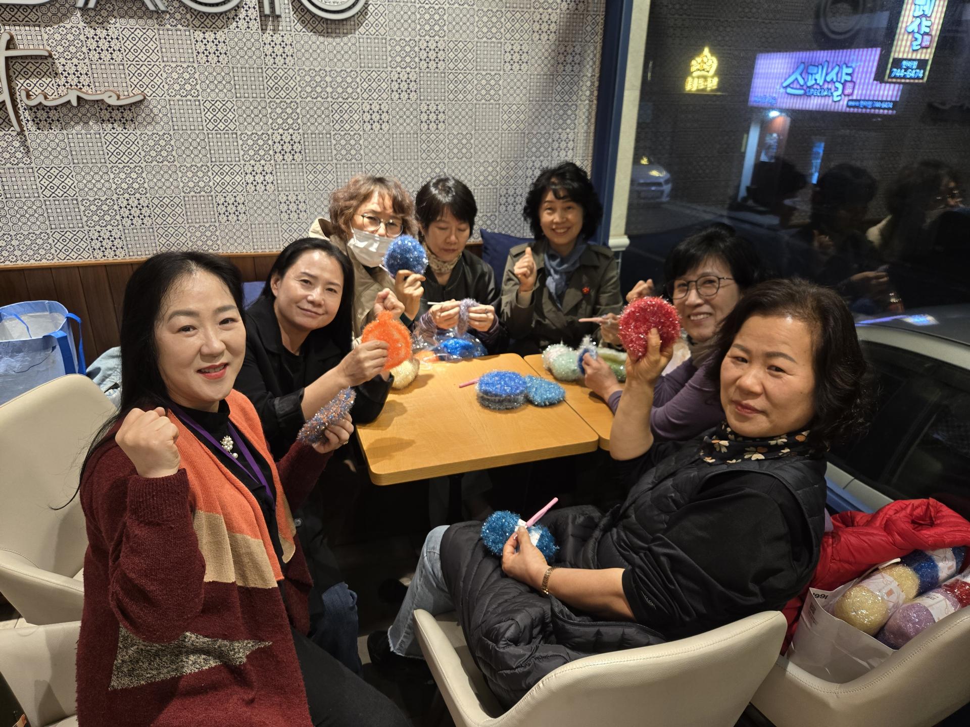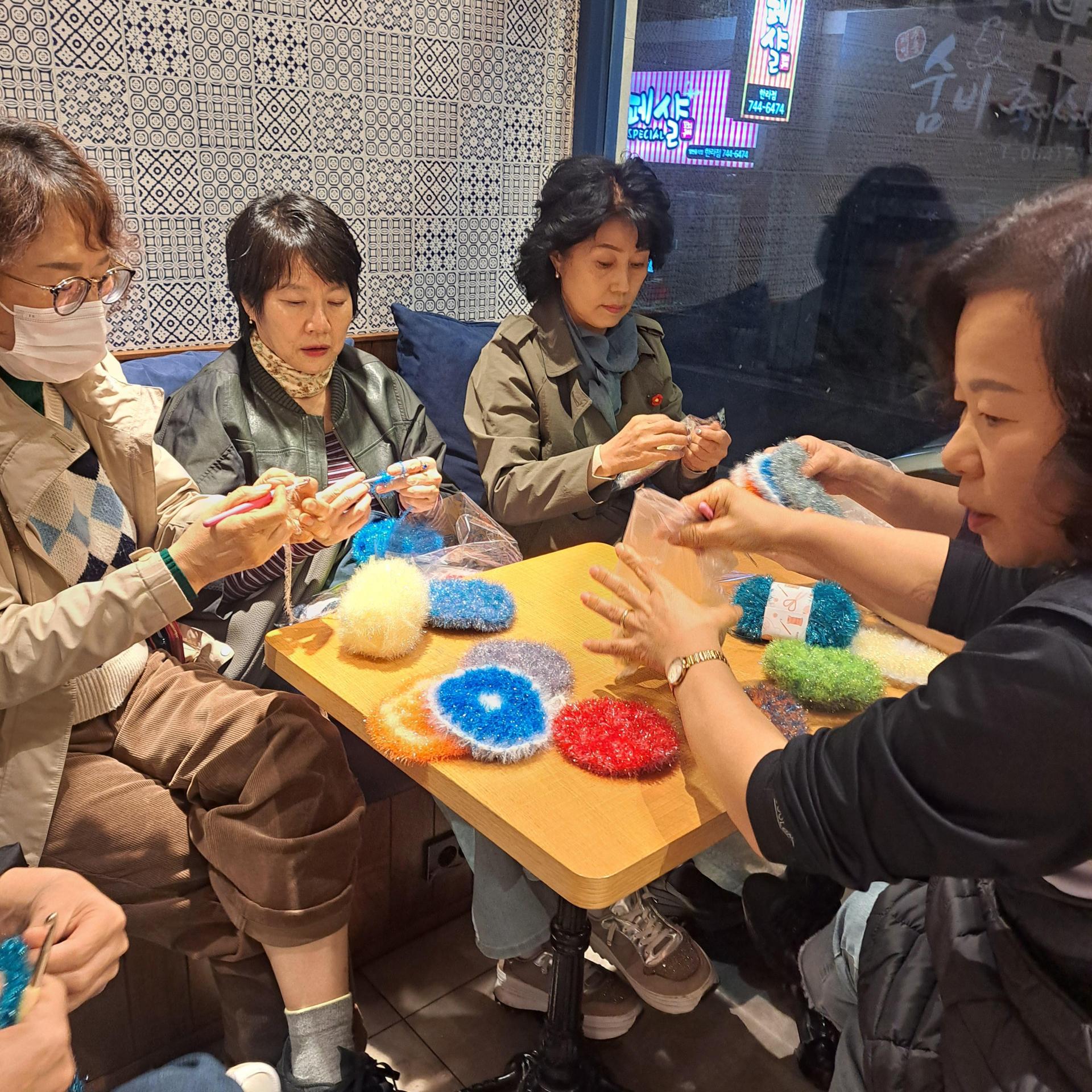 수세미를 뜨면서 오가는 수다로 즐거운 시간~