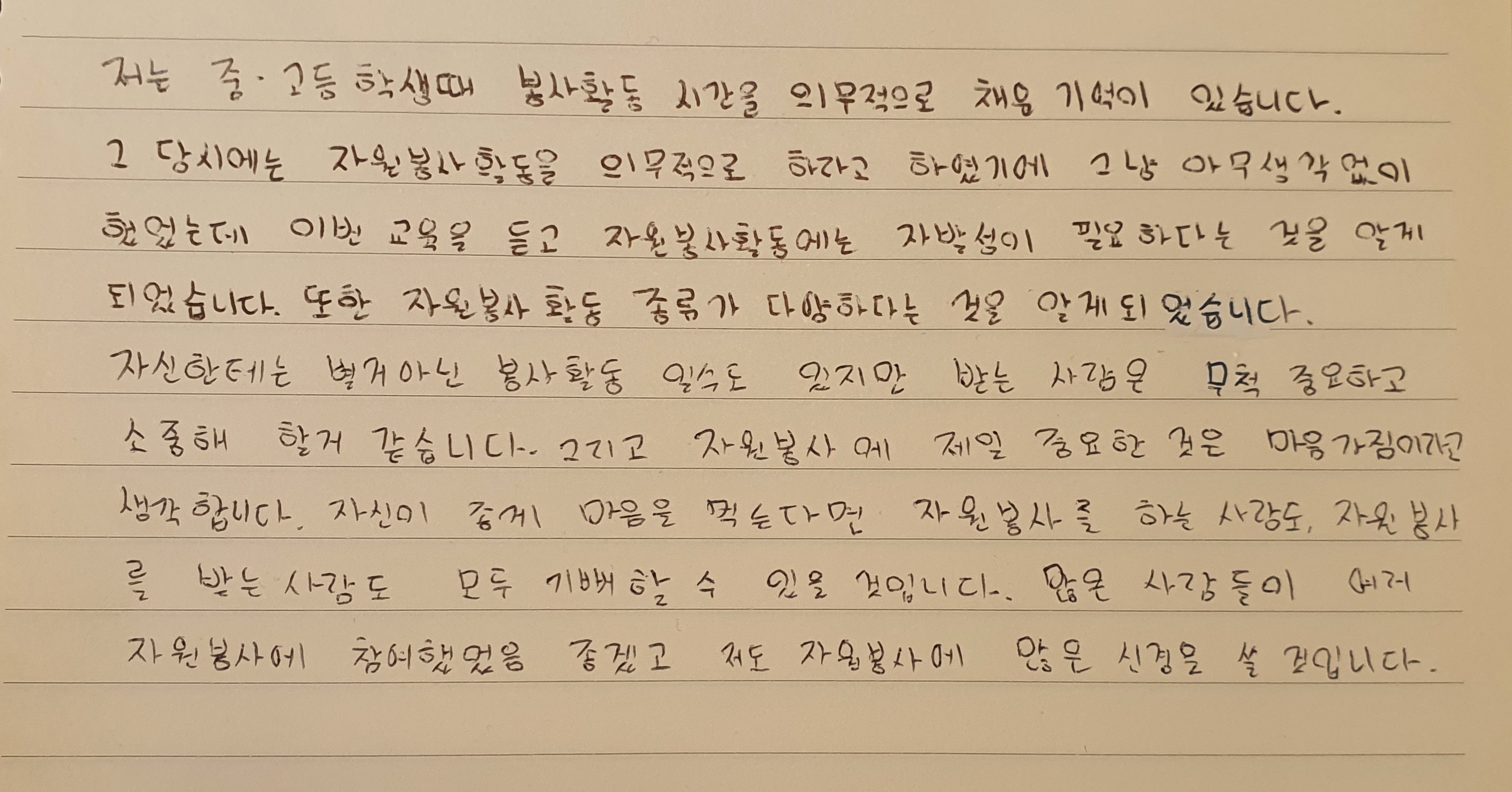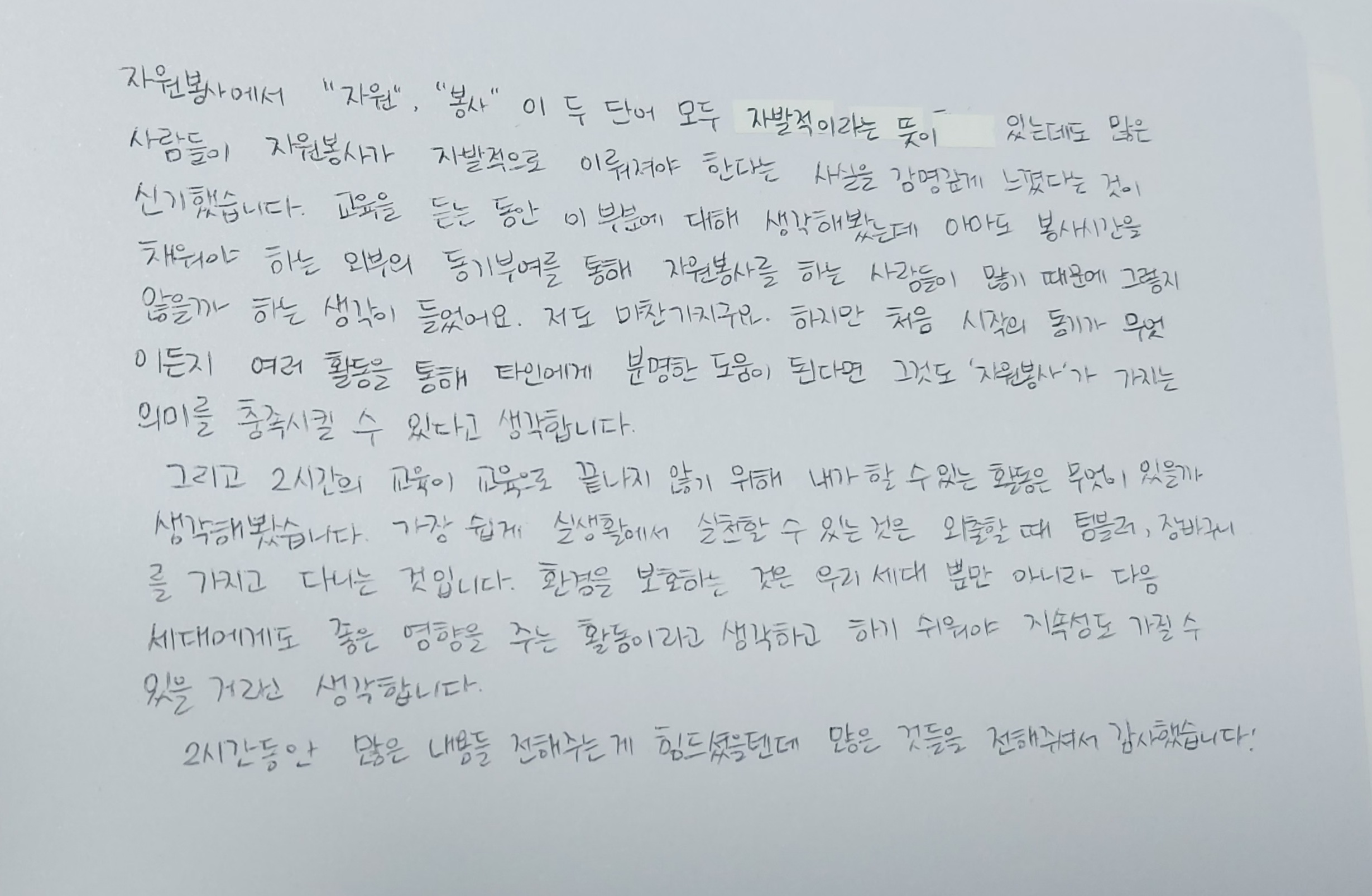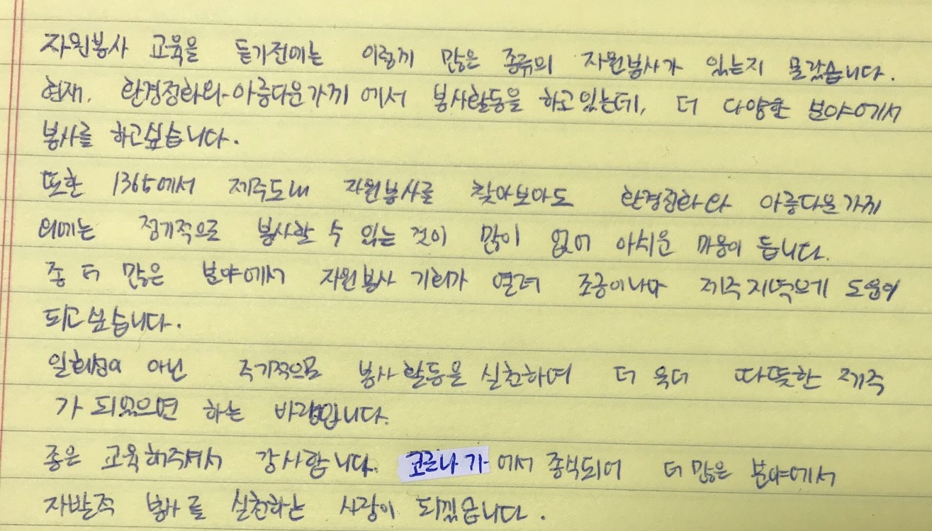 자원봉사 교육 이수 후 느낀점입니다.