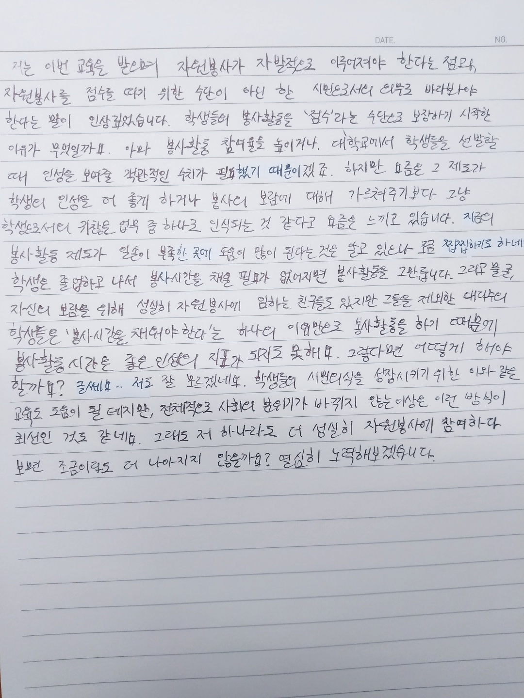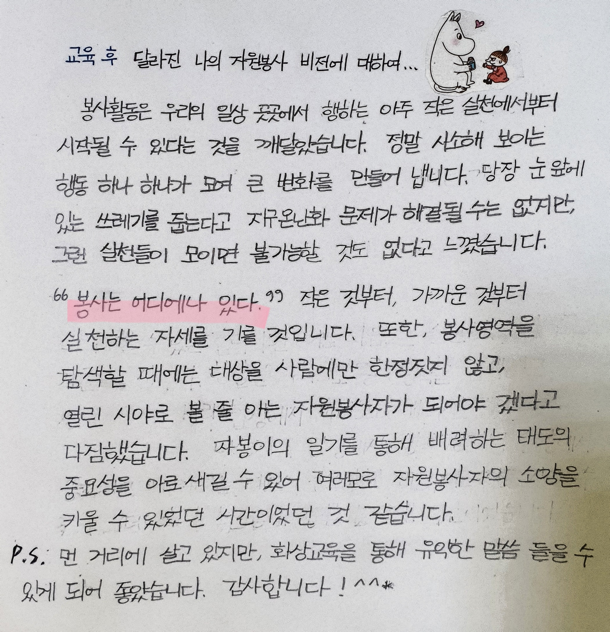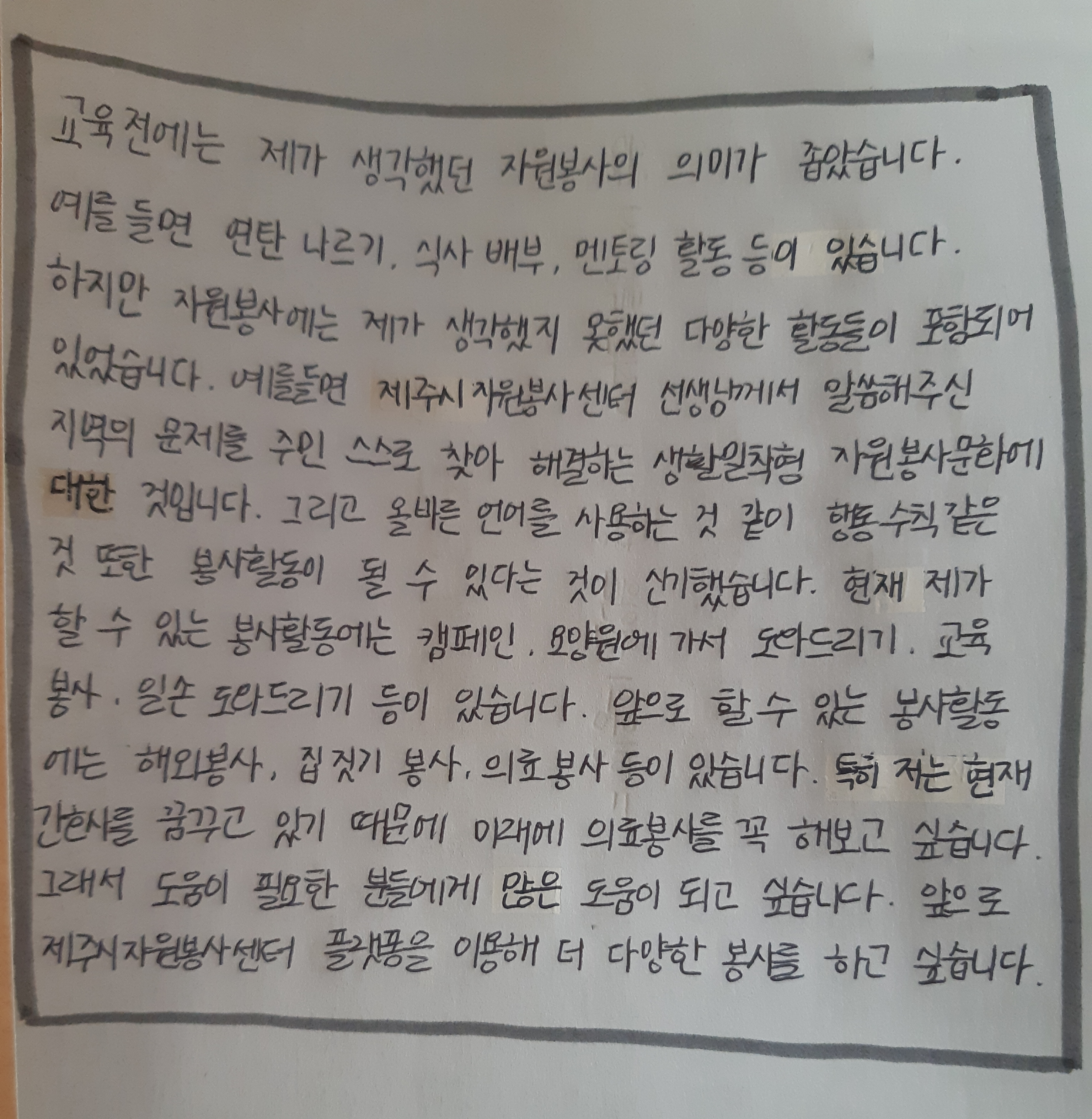 자원봉사 교육 이수 후 느낀점입니다.