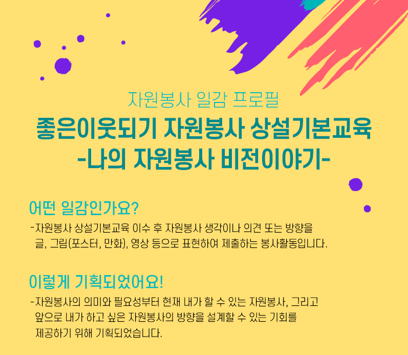 나의 자원봉사 비전이야기가 정말 화려한데요!^^