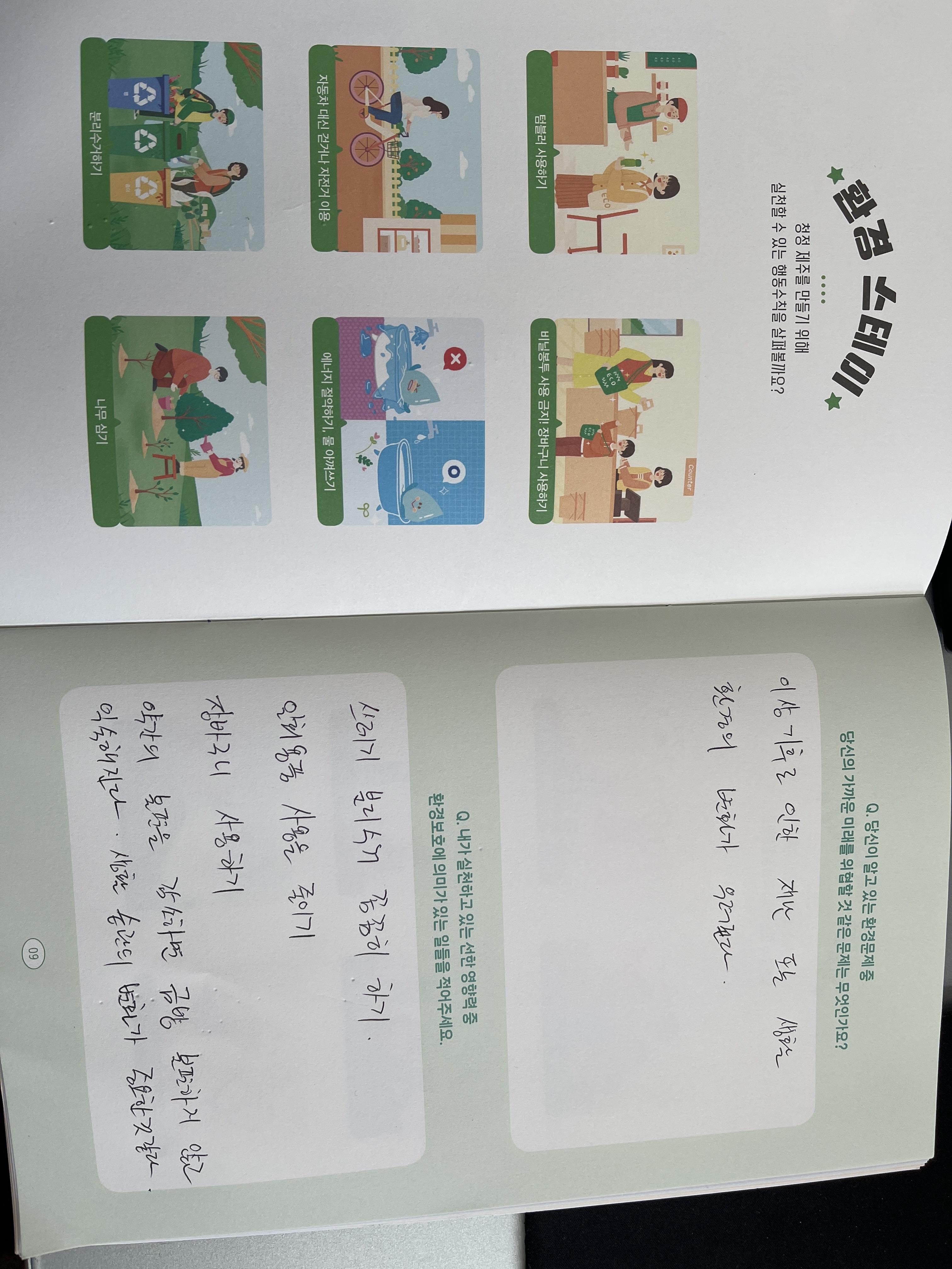 길거리 쓰레기 줍기, 분리수거 잘하기 등 우리주변에서 찾아보고 실천해야겠습니다.