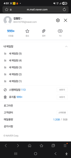 | 메일용량 변화 사진 |